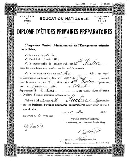 la première partie du Certificat d'Etudes Primaires (elle non plus